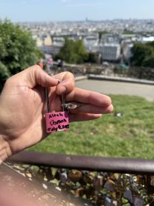 We went back to the Basilique du Sacre-Coeur because we had seen people writing their names on locks and then locking them to the fence. Me and Leah bought a lock, wrote our names on it, and locked it up. We took pics of where so next visit we can look to see if it’s still there.