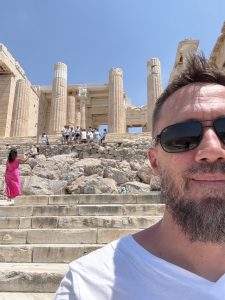 Greece is where we had the hardest time finding Ubers. They also didn’t have five-seat taxis, so we had to book two separate taxis. That was a little nerve-wracking having the family split in two. I took my daughter and sent the two boys with Hottie.