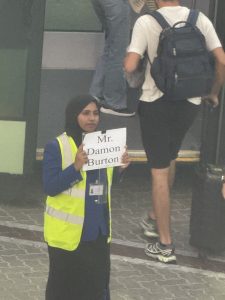 One we landed my kids looked out the door and saw a sign and said, “Dad, there is a person holding a sign with your name on it.” Sure enough.