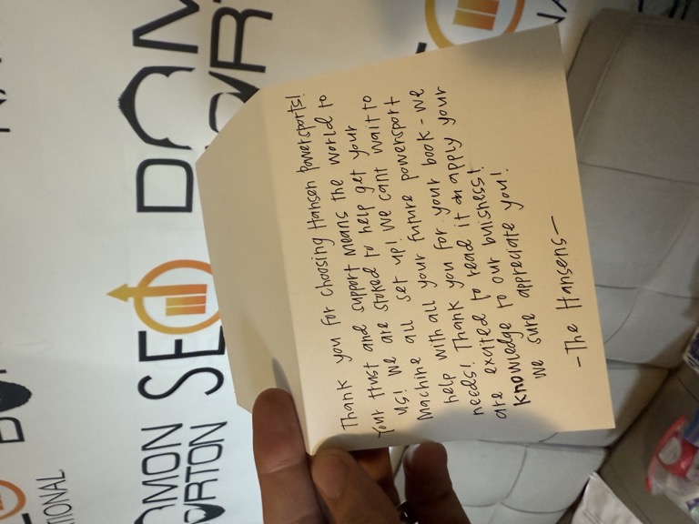 Any time there’s a shop I go to that I found out is a new business, I send go back after buying and bring them a copy of my SEO book and a little “thank you” package to support them.