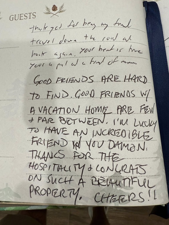 We’ve kept a guest book ever since we built the small cabin on the left.